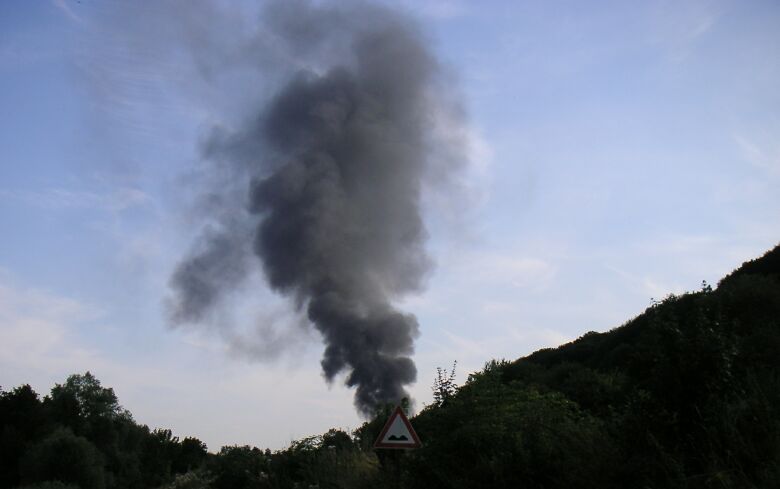 Großwallstadt: Nach der in wilder Fahrt kaum gefundenenen Autobahnunterquerung hatten die Tango-Boys etwas Angst, da wohl in dem Brand auch Teile explodierten (wahrscheinlich eine BMW-Filiale).