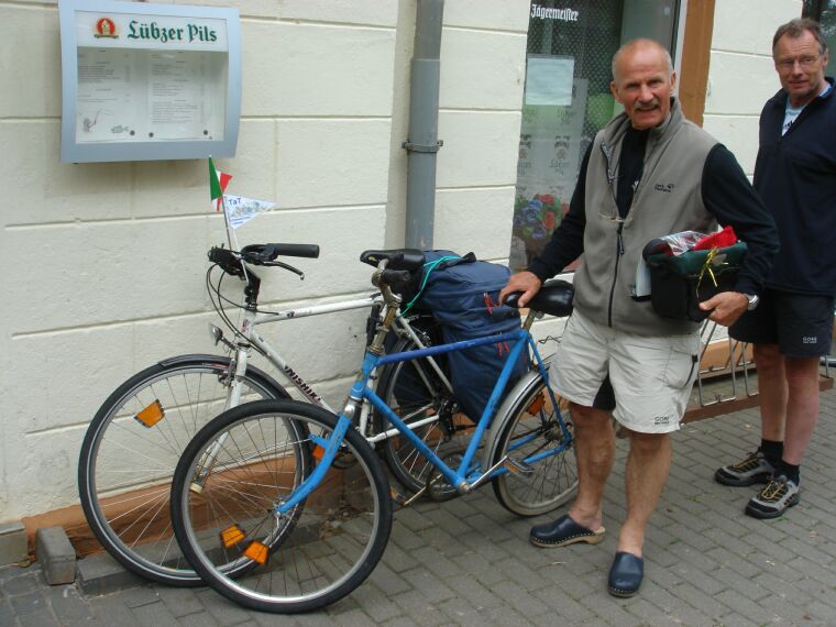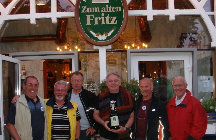 Siggi zeigte sich als Kumpel und schob das Rad die letzten Meter nach oben. Dann die nächste gute Tat von Siggi: Es erspähte beim Einchecken ins Hotel am Ende der Straße einen "Zum Alten Fritz", von dem Franz den anderen immer vorgeschwärmt hatte: "Da gibt's das süffige Zwickelfritz". Wir waren schon in Stralsund etwas achtlos am Brauereistammhaus vorbeigefahren.
