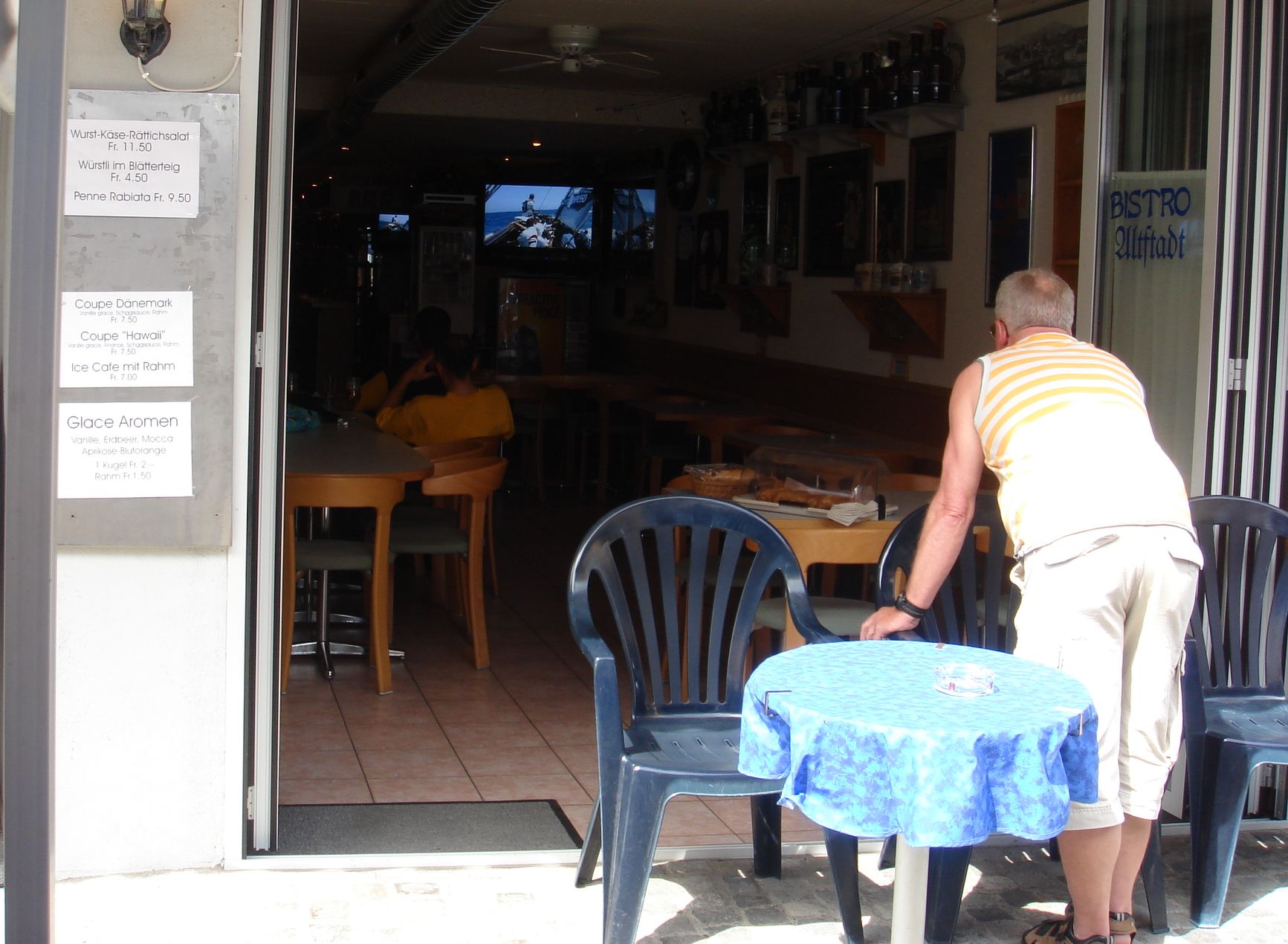 Dafür waren wir natürlich besonders schnell bei der ersten Pause in der Bäckereiwirtschaft in Mammern. Dort hieß es: "Prost Rolf!!" In Stein angekommen, stellten wir leider fest, dass die ganze Altstadt zugenagelt und durch eine Bühne unzugänglich gemacht worden war. Schade!