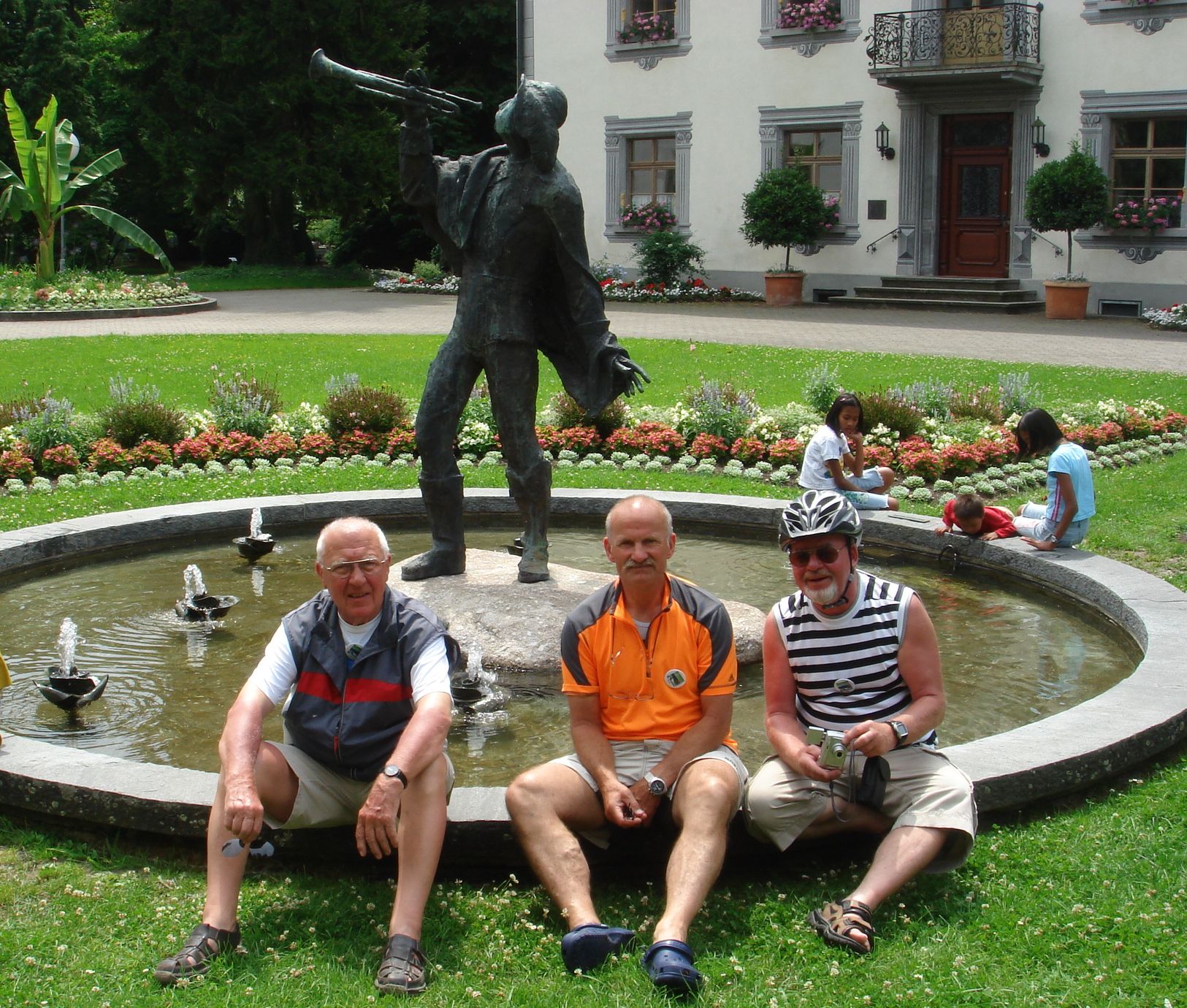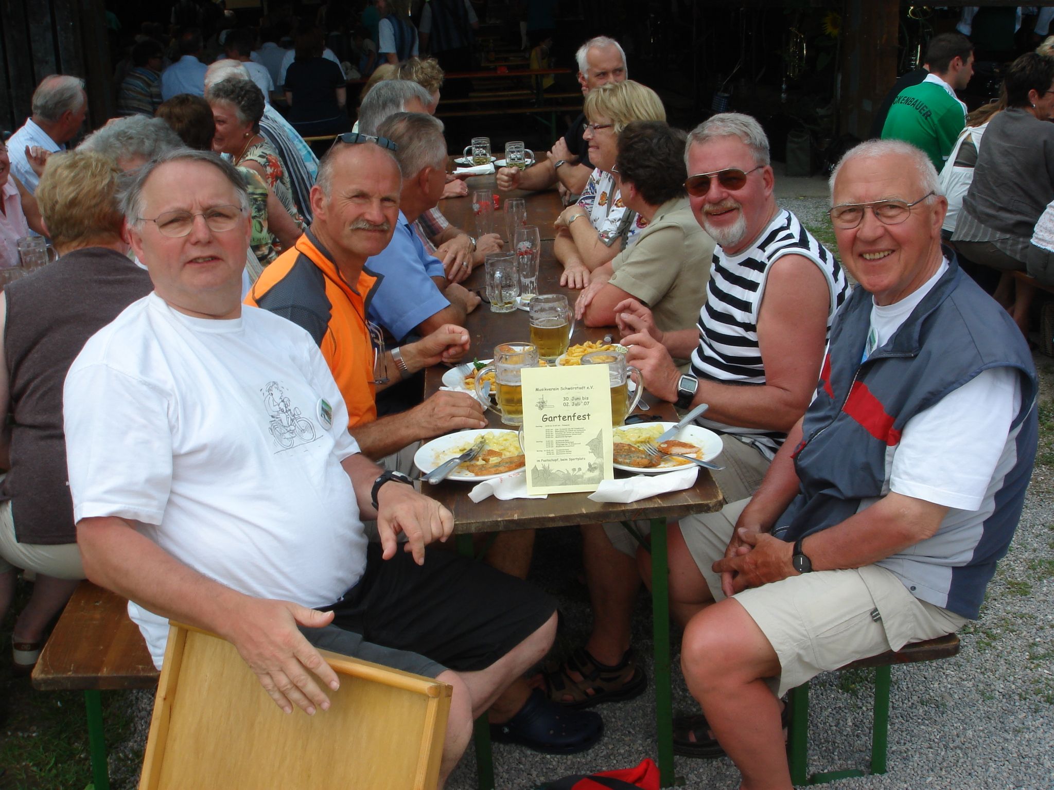 Wo ist die Trompete? (Wo ist der Hase?) Das aber waren noch nicht genügend Trompetentöne. Deshalb mischten sich die Vier unter die Musikanten und Zuhörer beim Gartenfest des Musikvereins Schwörstadt (Schweinesteak mit drei Stückchen Torte)