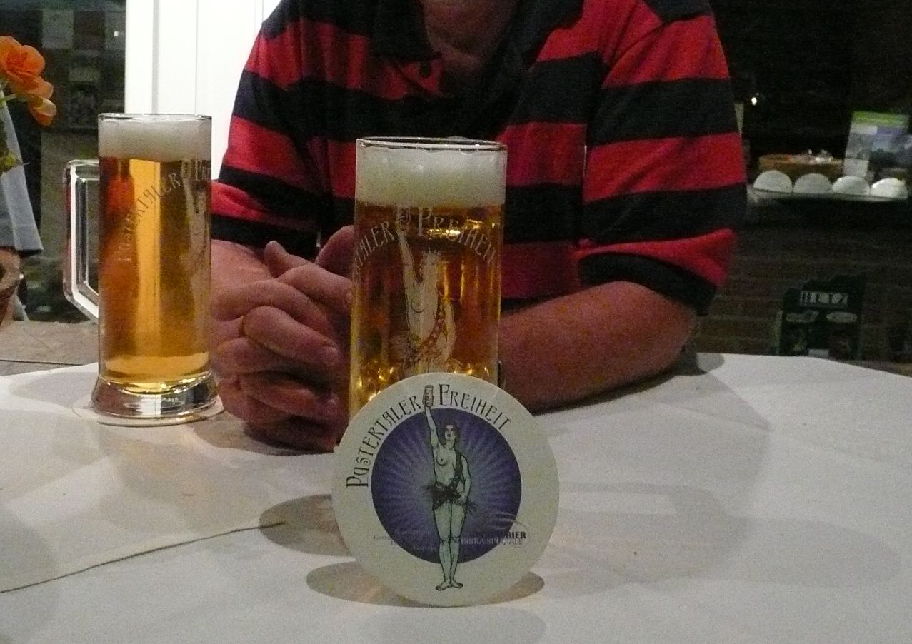 .... und schließlich im Hotel etwas Kaltes zum Essen und Freiheitsbier... Leider hatte Hotel- Junior- Chefe Andreas für Franz trotz des Notanrufes kein Netzteil für das Notebook besorgt.