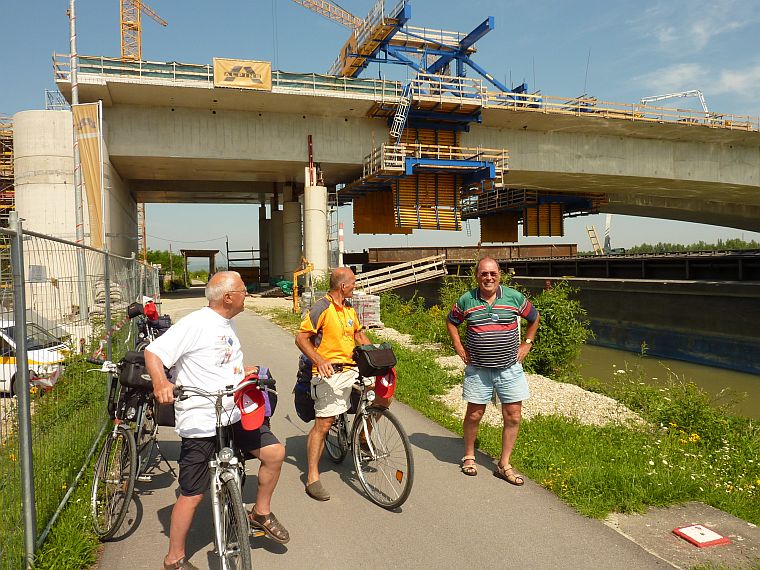 Riesenbaustelle: Bau der Autobahnbrücke bei Traismauer: Vortrieb beider Spurkasetten. |