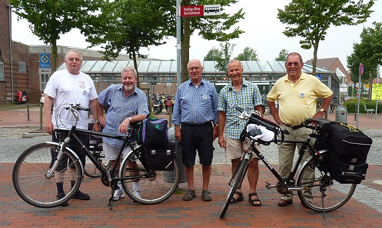 Die Tangoboys haben sich zum Abschiedsfoto vorm Bahnhof in Niebüll