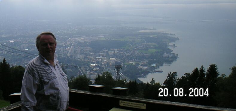 Pfranz auf dem Pfänder - er pfindet ihn pfundig... (1027 m über NN - mit Pfänderbahn) - dann 630 Meter tiefer auf der Seebühne die erste Gelegenheit die elegante Regenkleidung zu zeigen....