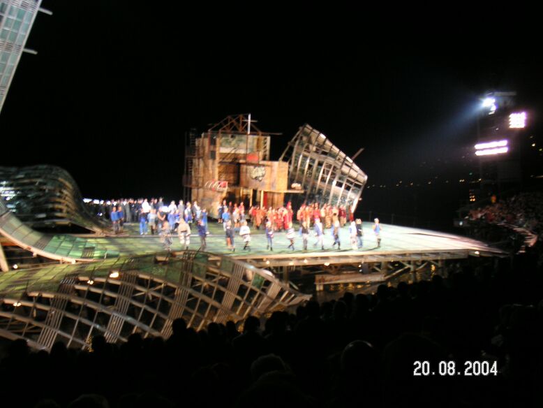 Trotz des schlechten Wetterberichtes war dies die erste Gelegenheit, die Pelerine anzuziehen: Während der Aufführung der West-Side-Story regnete es etwa eine viertel Stunde lang.