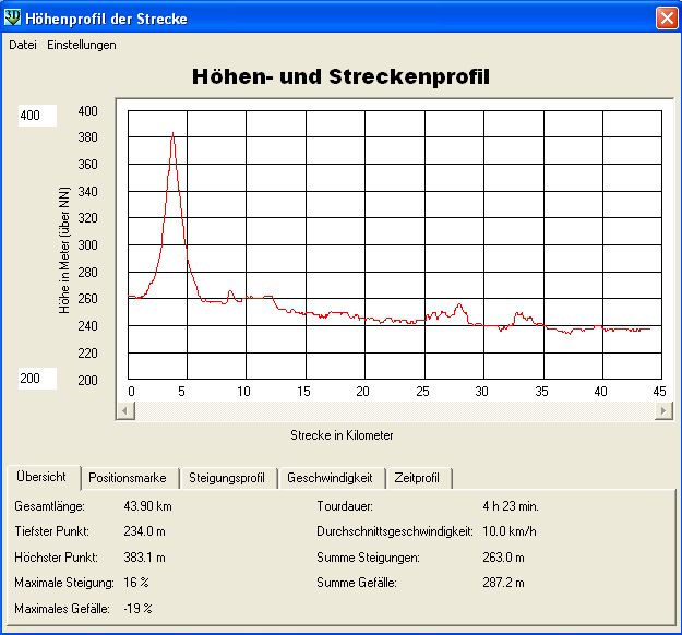 Ausnahmsweise gibt es für diesen Streckenabschnitt ein Höhenprofil: