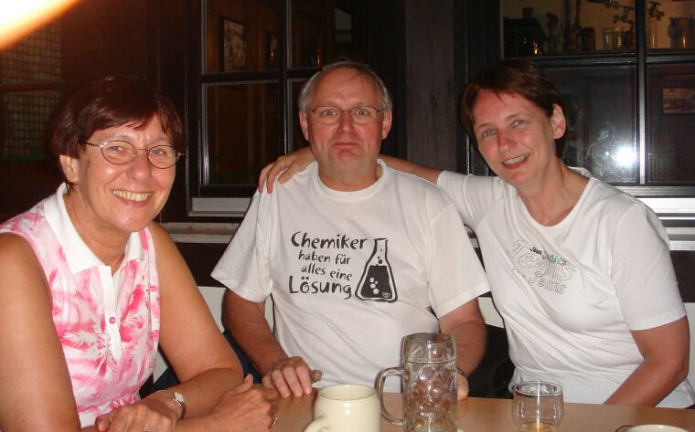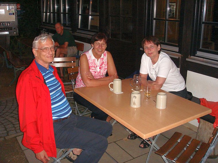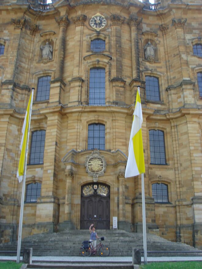 Dann nach einigem Schieben zur Wallfahrtskirche "Vierzehnheihligen": Es war so heiß, dass wir im Schatten Flüssigkeit aufnehmen mussten.