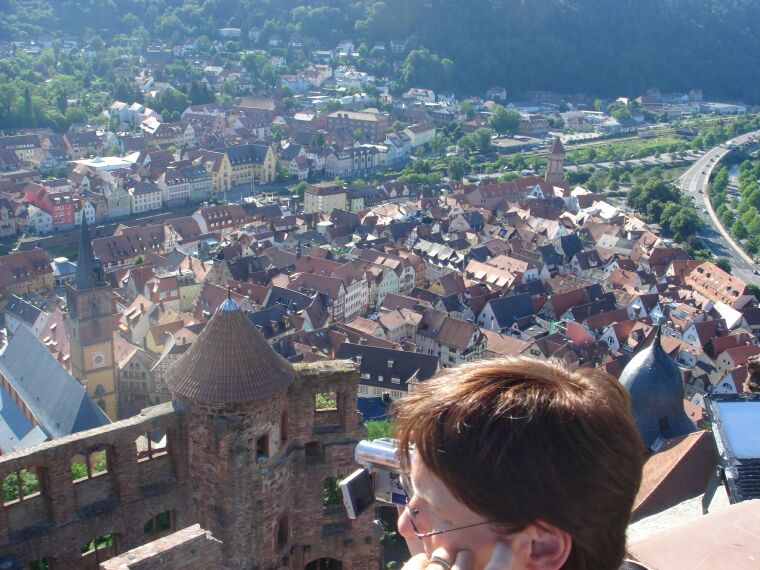 Obwohl es so warm war, mussten wir noch auf die sehenswerte Burg steigen. Hier Ulla bei der Anfertigung des Beweisfilmes: