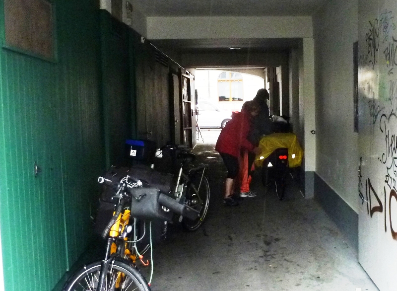 Wir durften unsere Räder in einen Weinseminarraum stellen.