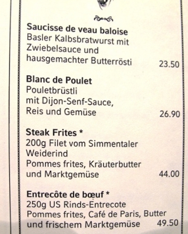 Gefühlt Essen (Deutschland): Essen (Schweiz) wie 1:4.   Hier Beispiele aus Basel...