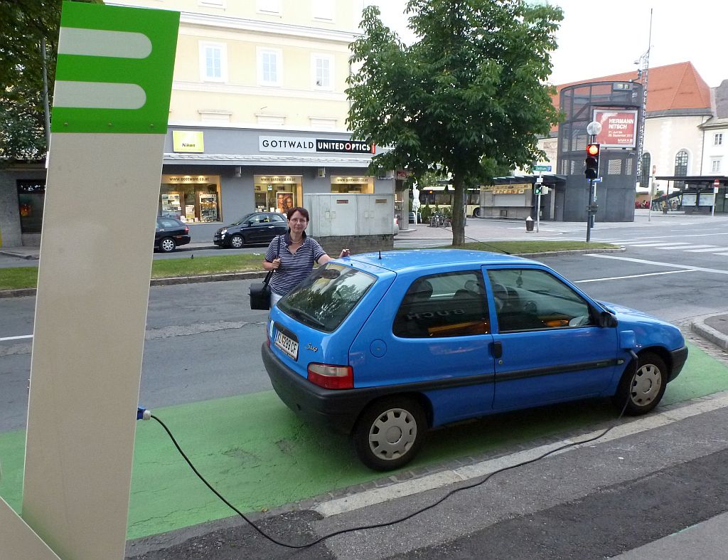 Endlich: Ulla am Ziel ihrer Sparträume ein Auto, das man kostenlos an der Straße (mit elektrischer
