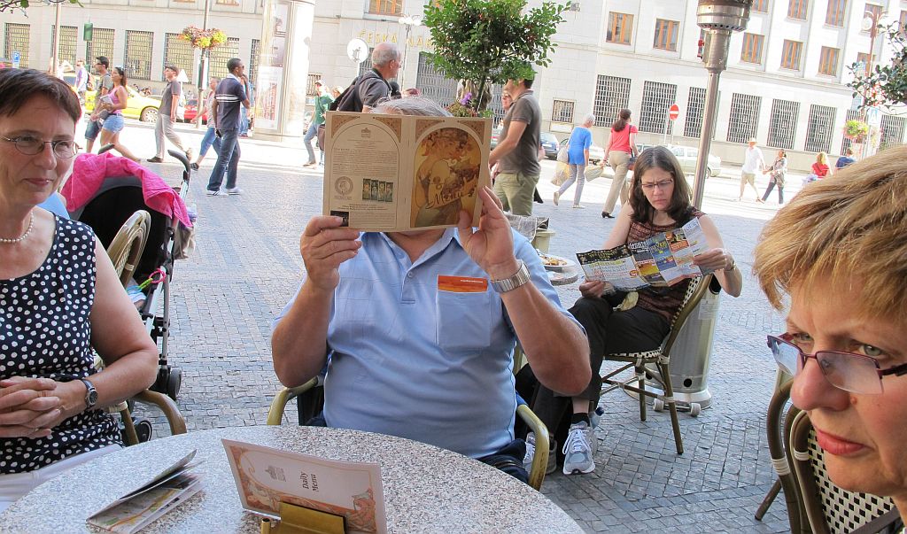 Das Hotel ist Dank Navi schnell gefunden. Die in der Nähe gelegene U-Bahnstation "Narodni trida" ist wegen Umbauarbeiten leider geschlossen. --- Schon tauchen wir in der Nähe des Hotels in den Jugendstil ein: |