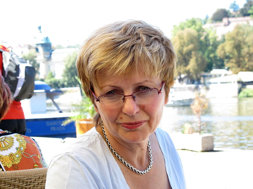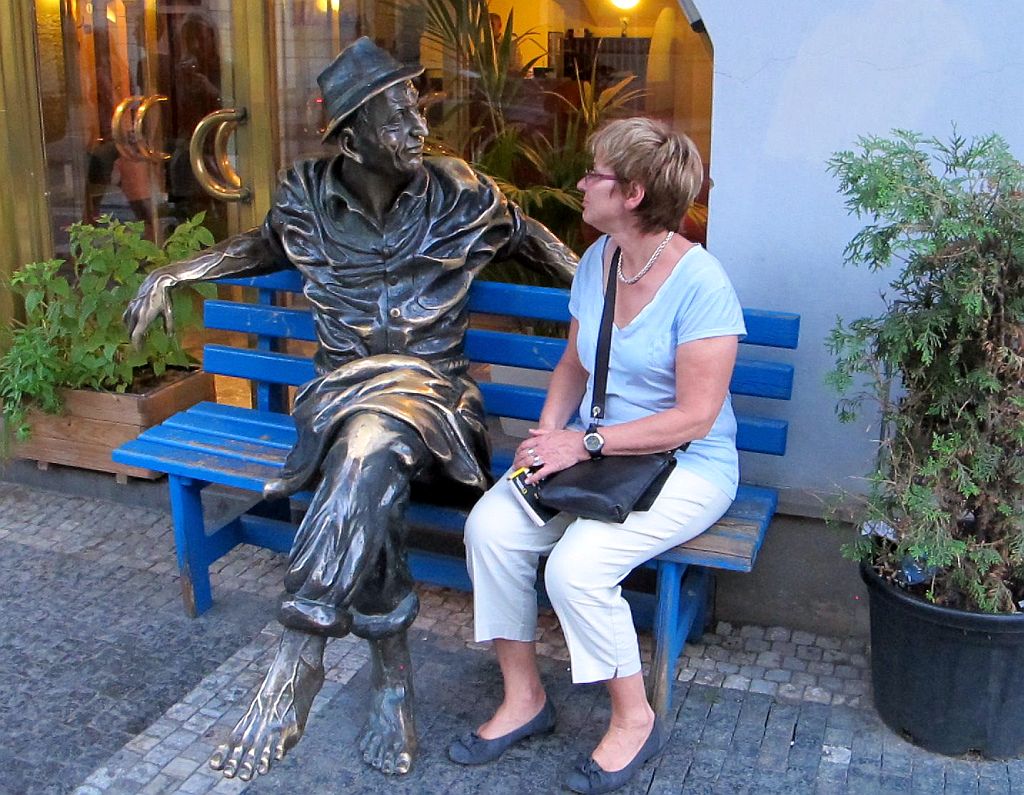 Auch hier immer wieder der Blick zur Karlsbrücke: (Renate spielt