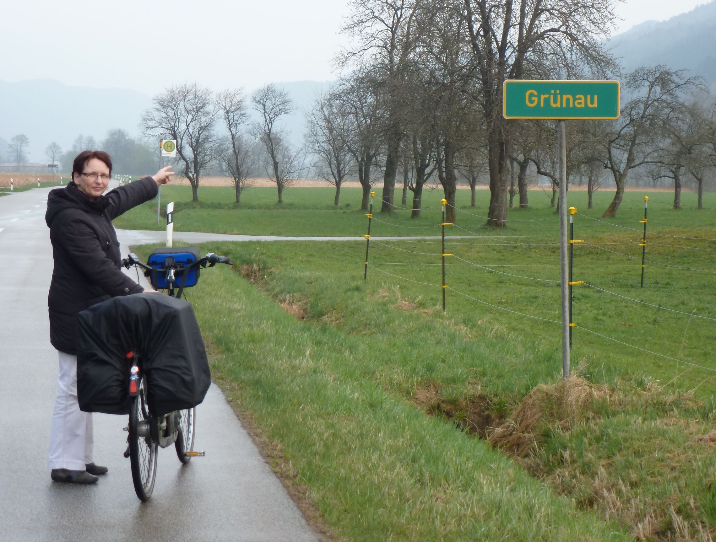 Bei unserem Anruf wegen der Radfähre war leider die Frau von Herrn Pumberger dran. Sie wollte lieber, dass ihr Mann zuhause bleibt: "Die Fähre geht nicht" Wir mussten deshalb den unangenehmen Weg über die Brücke bei Niederanna nehmen. Nach einigem Rauf und Runter im Regen mit Gegenwind nahmen wir die Baustelle mit letzter Akkukraft. Unser sehnlichster Wunsch: Eine heiße Dusche, bis die Füße blau werden! |