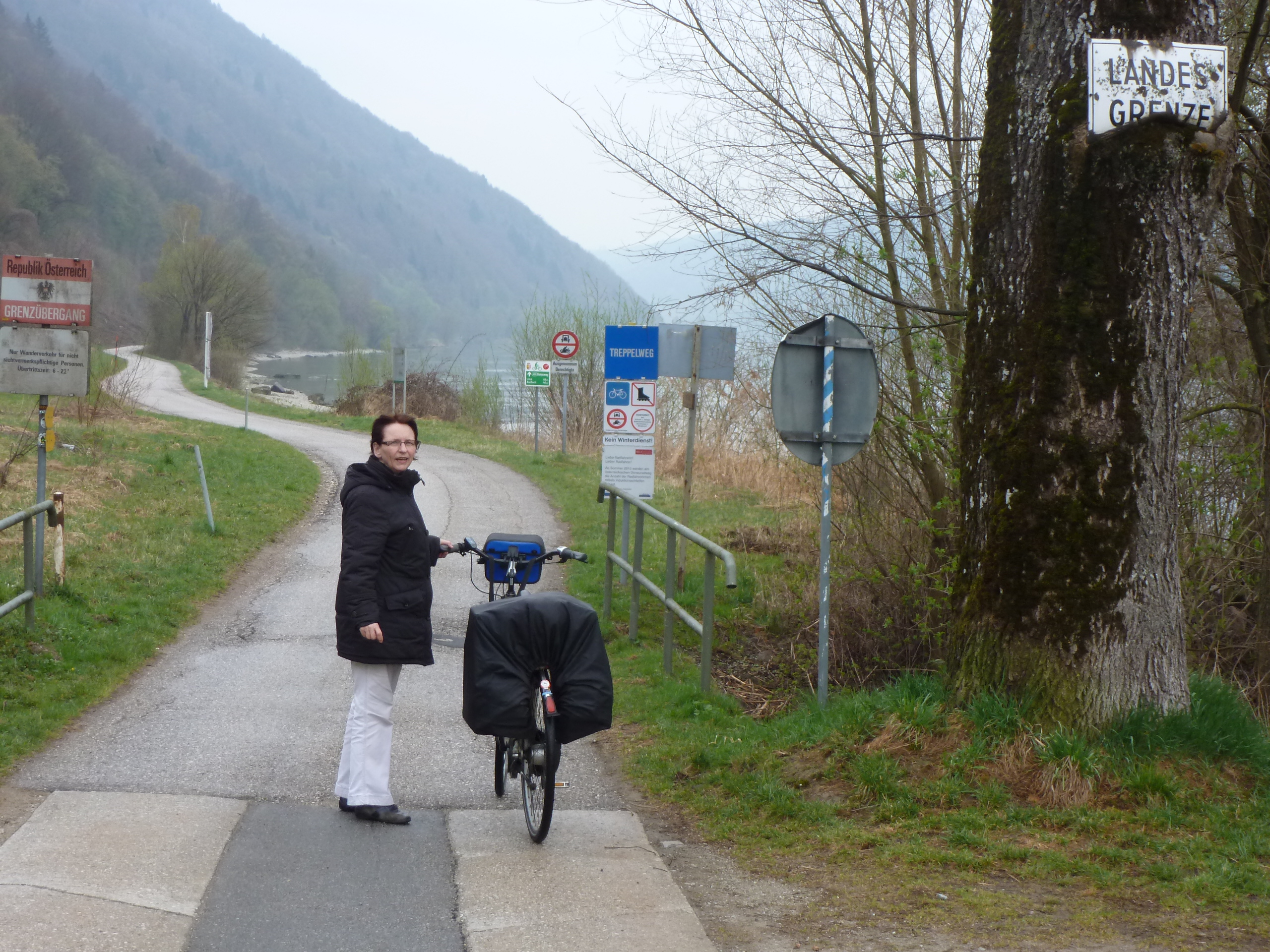Da helfen auch keine Anrufe in Wien beim Hotel. Der Portier und sein Kollege haben angeblich den ganzen Keller abgesucht und meine Telefonnummer aufgeschrieben. Ihr Rückruf: "Wir haben keinen Laptop gefunden". In Passau entdeckten wir eine schöne Einrichtung: Das Radgeschäft hat eine Druckluftstation zum Aufpumpen unserer Fahrradreifen direkt vor dem Schaufenster. Das haben wir genutzt. Trotz etwas Wind und Nieselregen ging die Fahrt los bis zur ersten Rast in der Kohlbachmühle. Aufgewärmt wurde dort mit Kaffee und Frittatensuppe. Dabei kam die bange Frage auf: "Ist die Radfähre in Betrieb und wenn ja, bis zu welcher Zeit?" Die Wirtsleute (sowohl von der Kohlbachmühle als auch Lisa von der Donauschlinge) sagen: "Herr Pumberger (0664/280 11 44) ist nett und fährt fast zu jeder Tages- und Nachtzeit". |