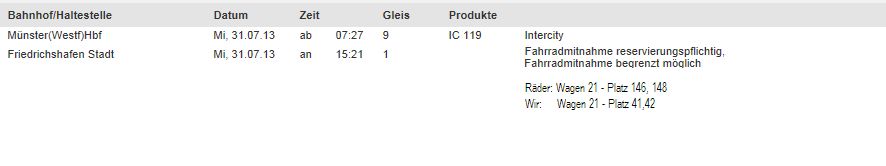 1.Klasse und die Räder wurden vom Zugpersonal angenommen = noch ein Pluspunkt |
