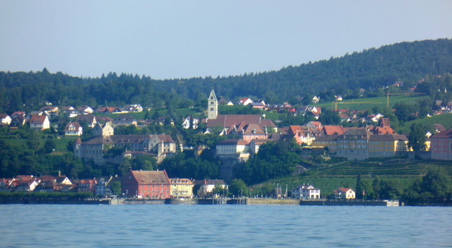 Meersburg durch Fenster des Katamaran