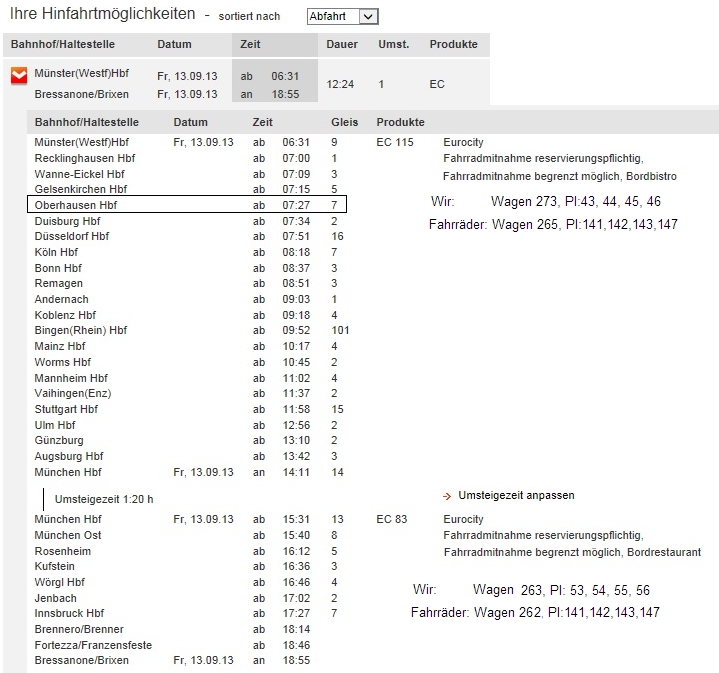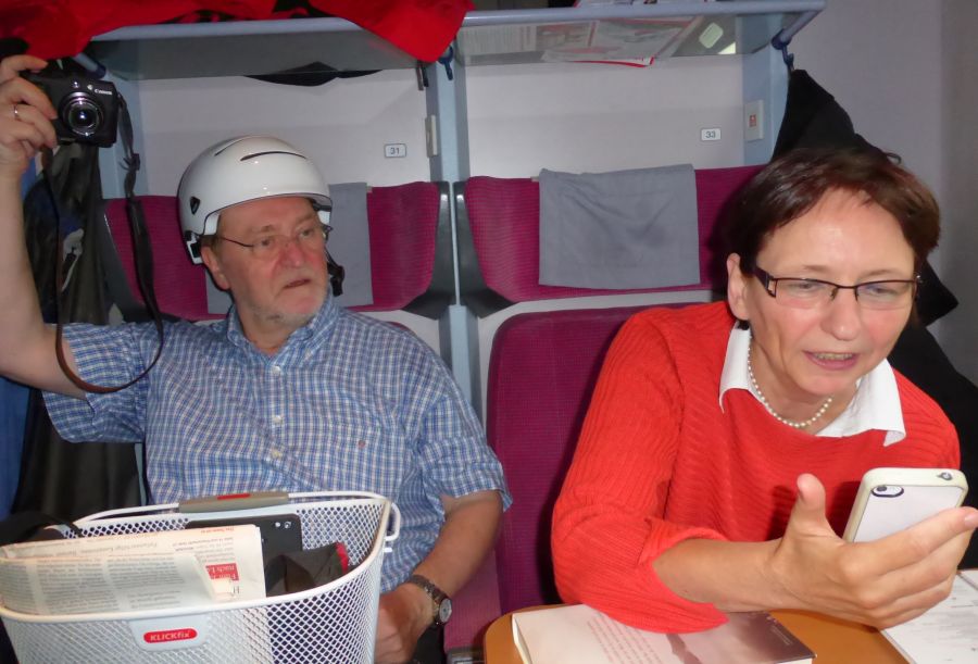 Rolf ist schon im Zug auf Fahrradtour -- Im Zug ab München waren keine Reservierungen zu sehen - der Schaffner sah das aber sehr entspannt. |