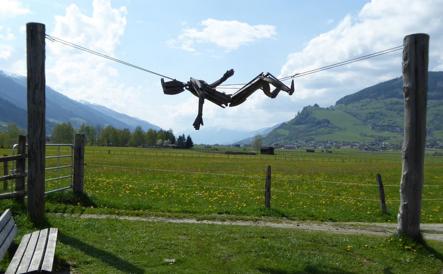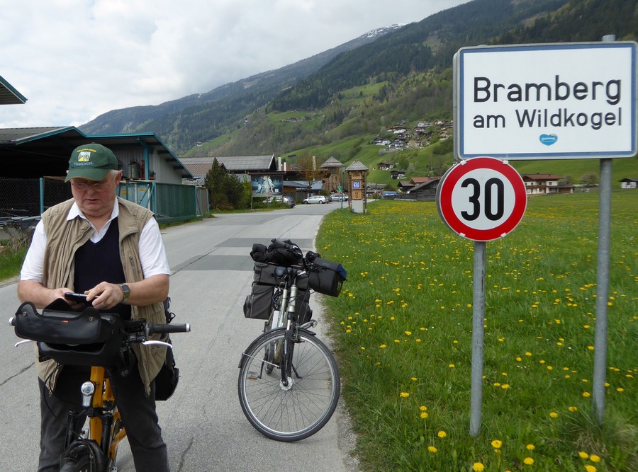 Franz hatte seine Kappe verschludert - aber von der netten Chefin vom Stotter eine Wildkogel-Reklame-Kappe bekommen. |