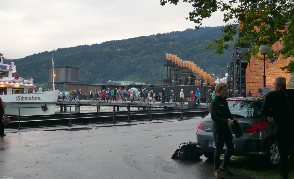 Hier ein Blick hinter die Kulisse mit Zuschauern, die per Schiff aus Lindau und Bad Schachen kommen.