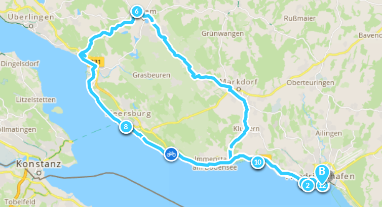 | Nun zum Navigationsbeispiel: Der "Prälatenweg" - ein beliebter Rad- und Wanderweg zwischen Kloster Salem und der Wallfahrtskirche Birnau. | |||