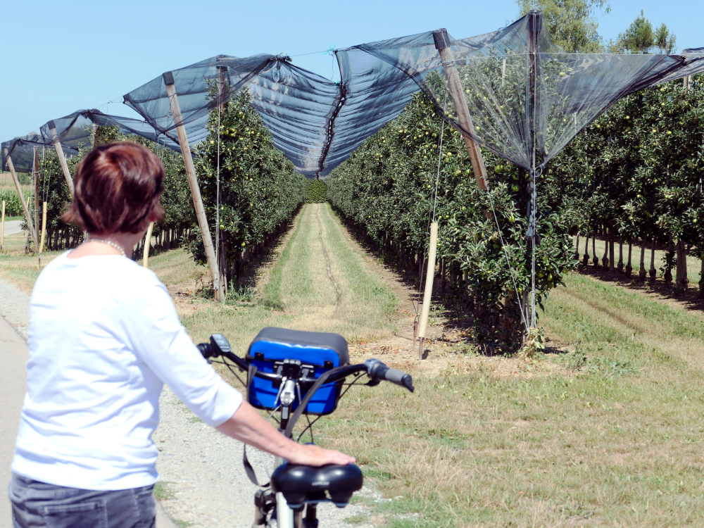 In diesem Jahr nahmen wir einen anderen Weg nach Salem. Der ist viel schöner - man ist mehr in der Natur! Pflichtfoto für Ulla: Apfelbäume mit Antihagelnetzen |