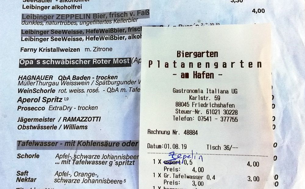 Abendessen im Platanenbiergarten: Das Zeppelinbier war alle.