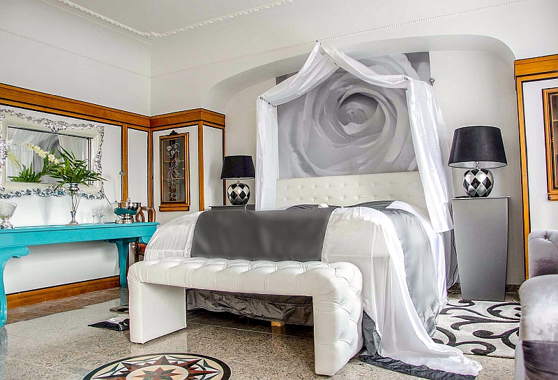 Das Schlafzimmer der Platinsuite mit Kronleuchter