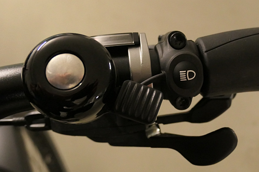 .. und neben Klingel und Schalthebeln ein weiteres liebevolles Detail: Der Schalter für Fern- bzw. Abblendlicht.