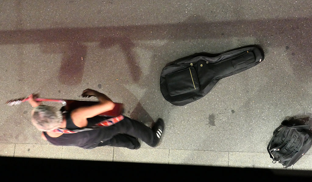 Sein Euro-Stück landete aus den Fenster genau auf der Gitarrenhülle