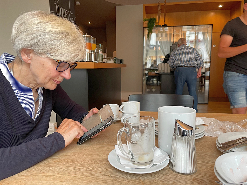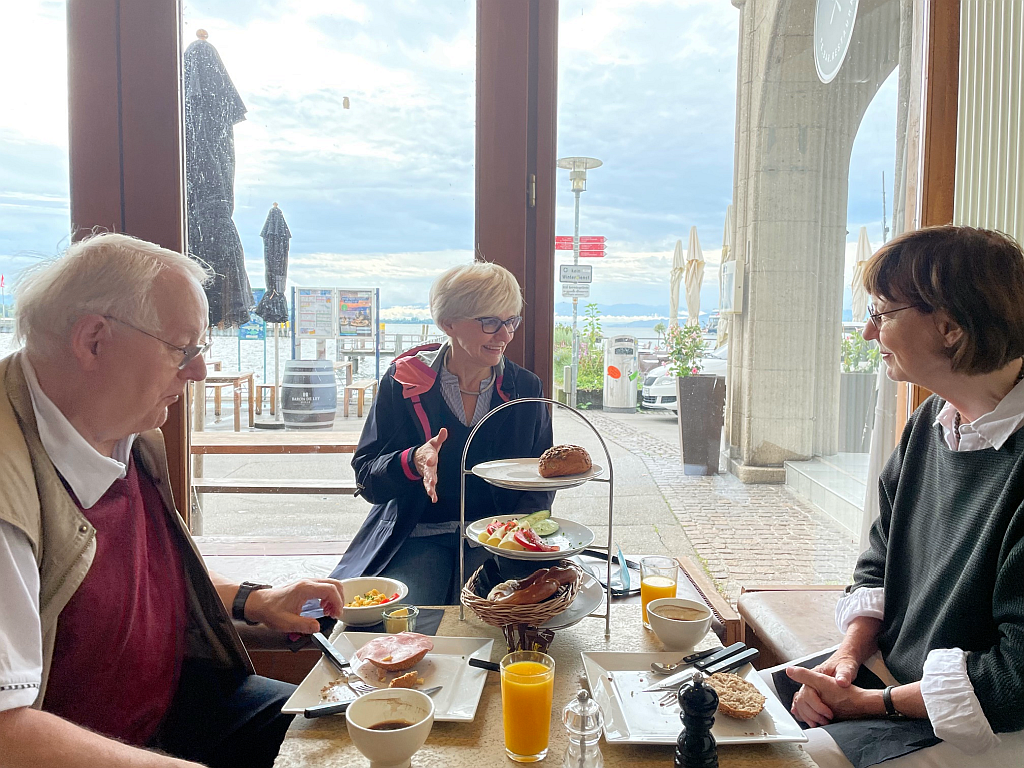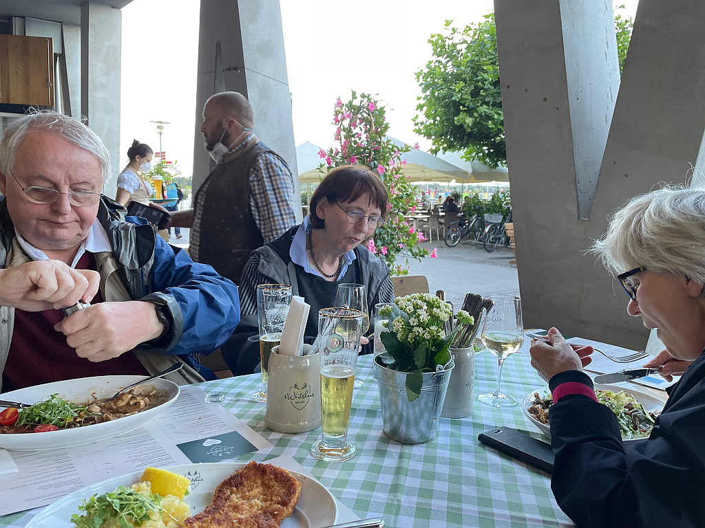 Nach dem Frühstück im Goldenen Rad sucht Renate den Kontakt zur