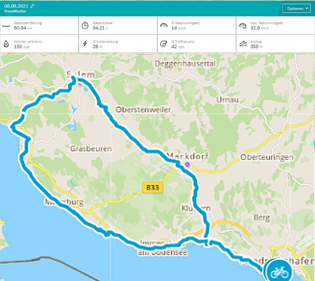 Heute zum erstem Mal mit KOMOOT-Routenführung nach Schloss Salem:
