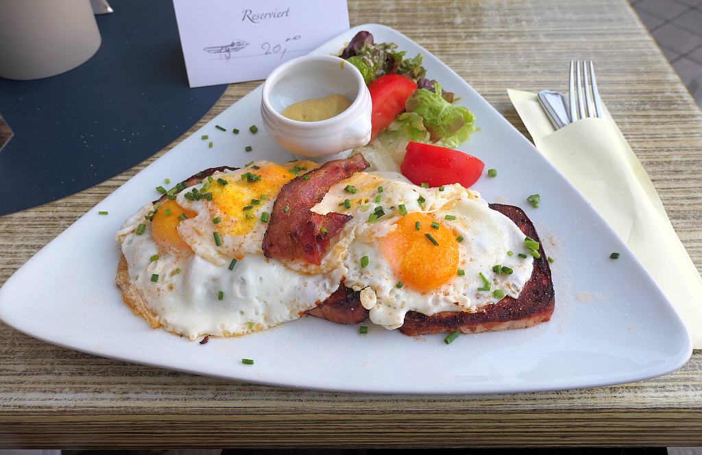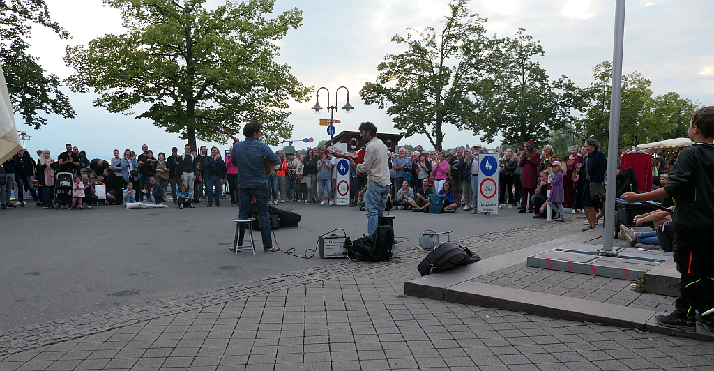 Vorm Spitalkeller ein toller Auftritt der beiden Gypsy Couine Y Cana - Jungs. Auf dem Tisch: Der lang ersehnte Leberkäse (steht nicht mehr auf der Karte) |