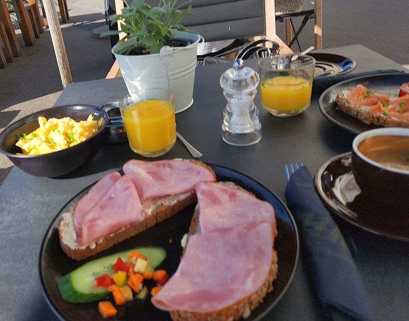 Wieder Frühstück bei Bilderbuchwetter und dazu eine strahlende Maja.