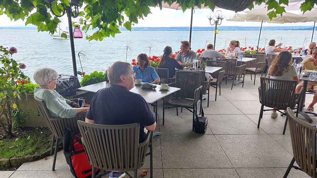 aika-Frühstück im Sonnenschein - dann auf zur Anette. In Meersburg - oh Wunder: der "Wilder Mann" ist seit ![]() Franz hätte sich fast ![]() Wegen des schönen Wetters wurde bei "Schorsch" noch ein Halt eingebaut. |