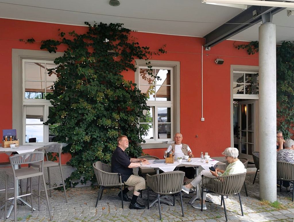 ![]() Dann mit den Rädern zum Bahnhof und mit dem Zug nach Lindau. (Wir haben schließlich alle eine ECHT BODENSEE CARD!) Wir wollten zur Ausstellung von Christo und Jeanne Claude im Kunstmuseum: ![]() Für mich bleibt die Frage: Woher hat Christo das viele Geld für seine teuren Exponate bekommen? Danach ein Bummel durch Lindau mit obligatorischem Kaffeetrinken im Lindauer Hof - allerdings diesmal unten, weil oben geschlossen war. ![]() Wir fanden auch einen Stehtisch mit einem sardischen Schuh! ![]() Es geht weiter: Wo ist Ulla? ![]() Nach der Rückkehr und dem Abendessen: Ein wundervoller Balkonabend mit Blick auf Mole und Turm ![]() |