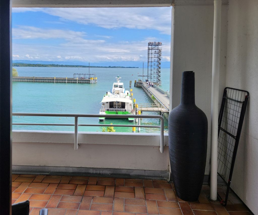 Moleturm. Selbst Fridolin ankert vor unserem Balkon. Nach dem Auspacken schlenderten wir zum Spitalkeller - auch da fast wie gewohnt: Janis war da - aber kein Leberkäse. |
