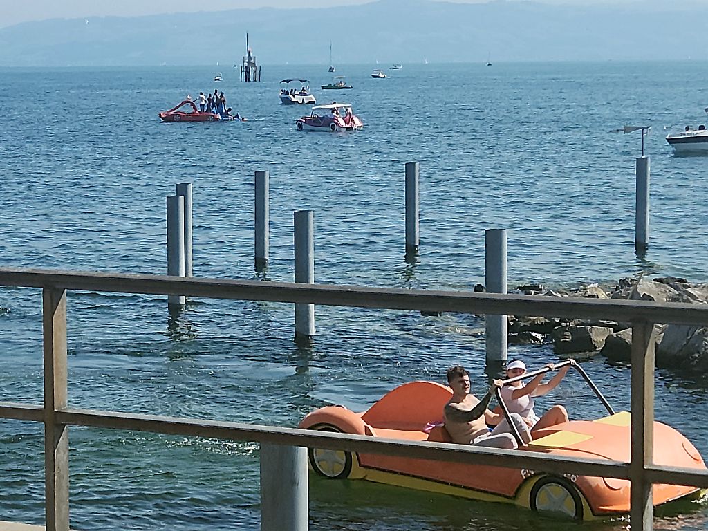 (Tretboot-)PKW und Rutschen auf dem Wasser